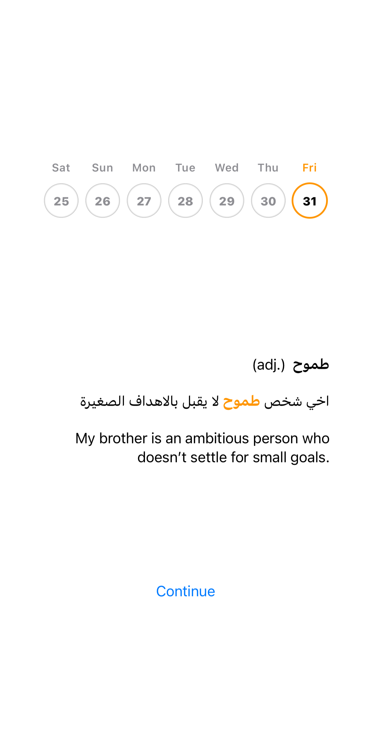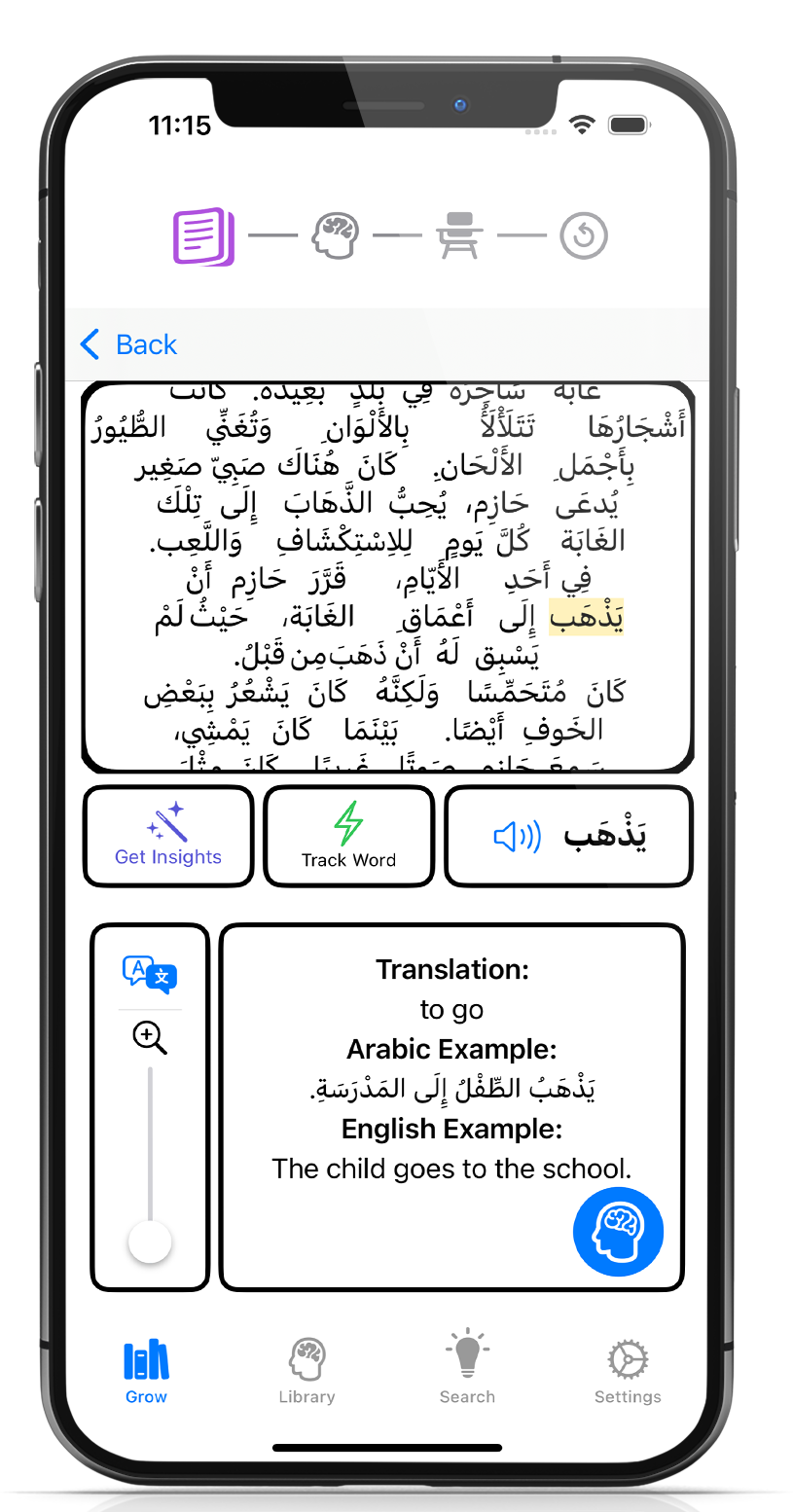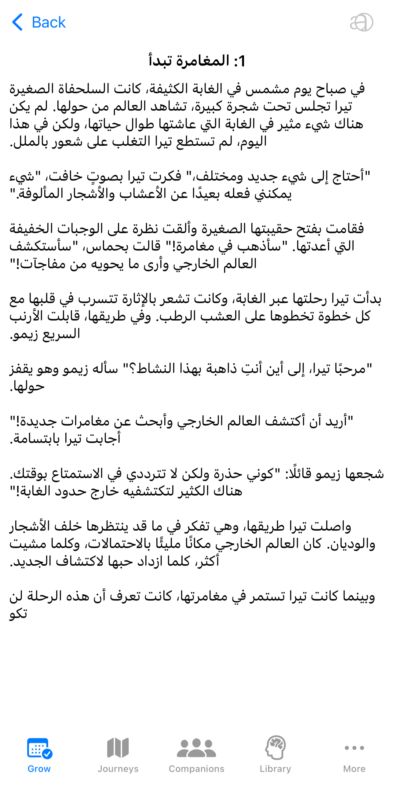 Our app uses AI to provide real-time, interest-based stories and tailored content. You will be exposed to real-life Arabic usage while reviewing words and phrases relevant to your learning stage.