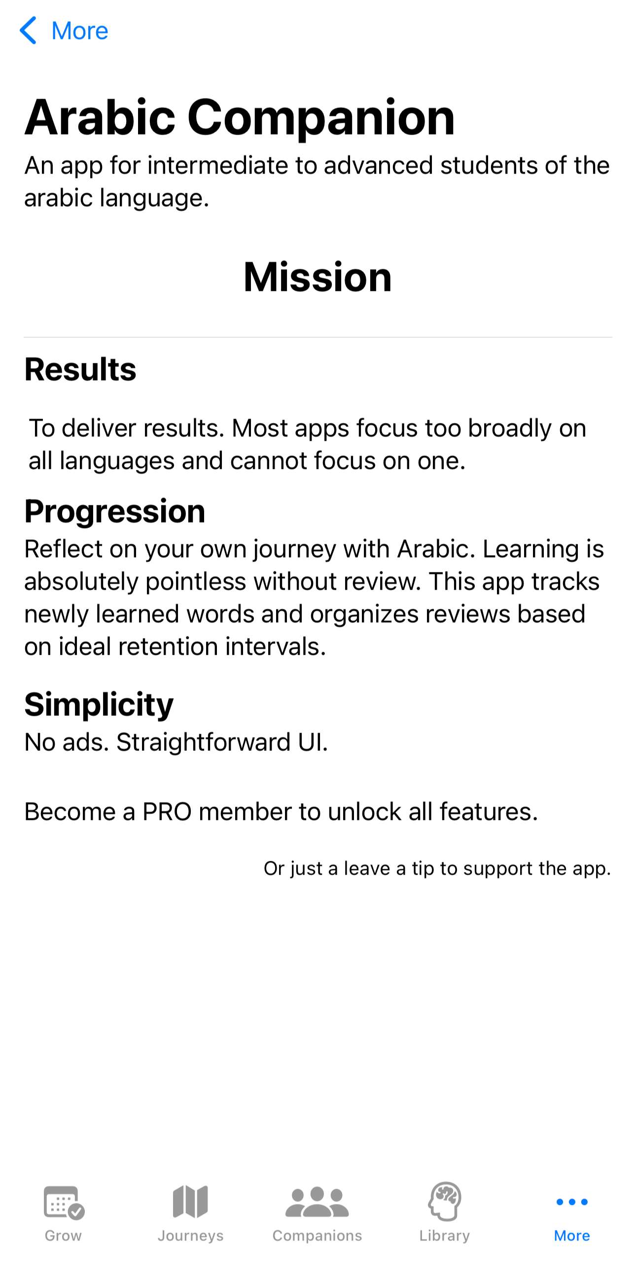 The app follows a natural learning approach—exposing you to authentic Arabic excerpts and guiding you through application-based exercises to reinforce learning.